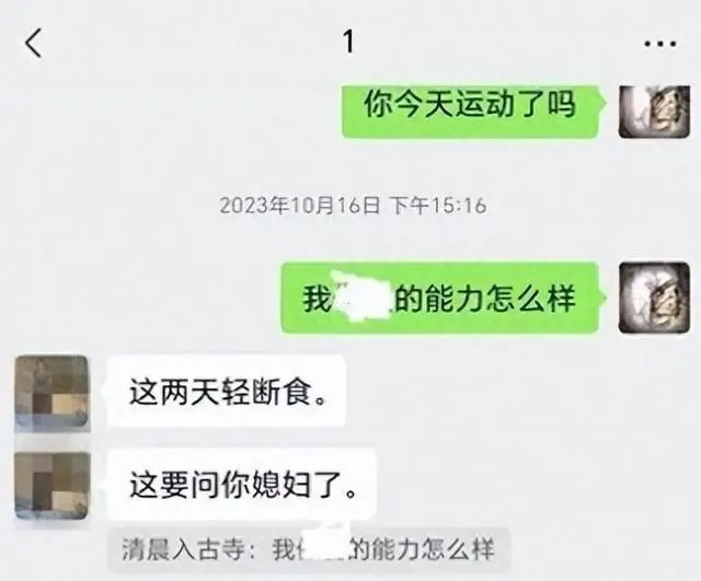 更令小海棠叹服的是,杨某虽然是干部,但丝毫没有架子,不仅密切关注“1”有没有做运动,还不忘回访自己做运动的能力如何,可见两人志同道合,已经不是第一次亲密互动了。