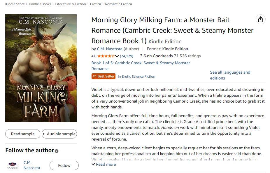 昨天看了一个非常震惊的内容。赏析亚马逊女频top1小说 ——morning glory milking farm