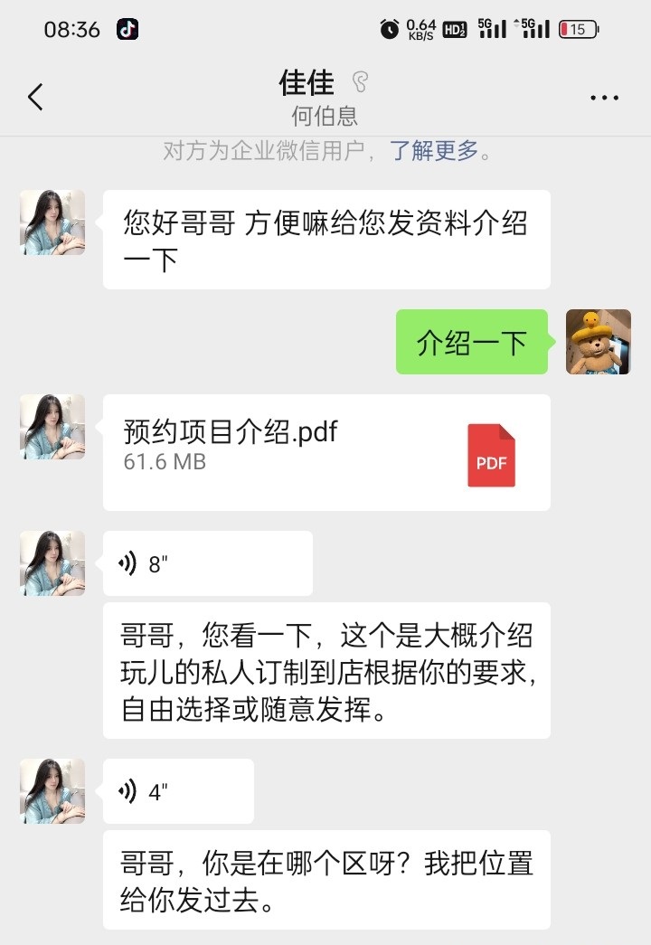 抖音刷到一个造型设计直播,结果一个女的在里边却不是做头发的,在直播间引导下加了企业微信,男名认证女号。