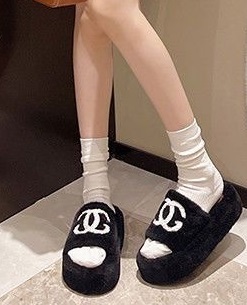 避雷这个妹子在E巷,中间夜市过去大概第10个门左右,脚上穿一个带黑色香奈儿标志的白色棉拖鞋。就是下面这款,但是白色的,黑色logo