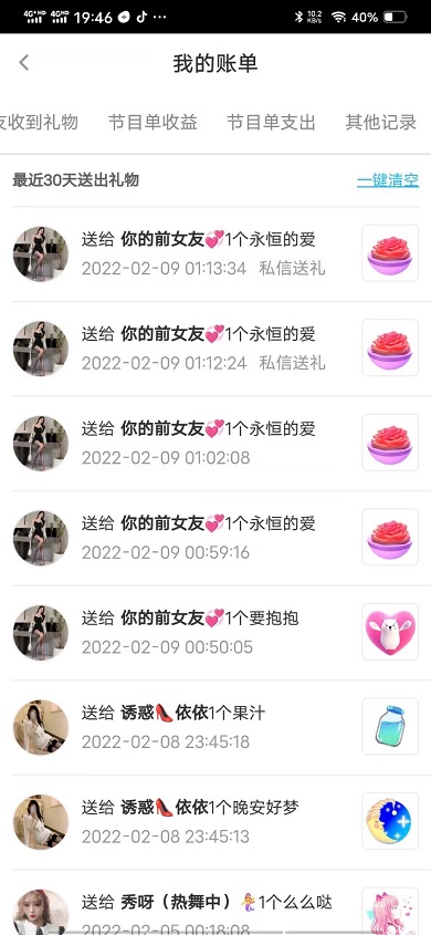 我qq让她下播,但没有回复,又去直播间让主播下播开始把,她用qq语音过来说,还需要一个一吻定情(折合三百)。